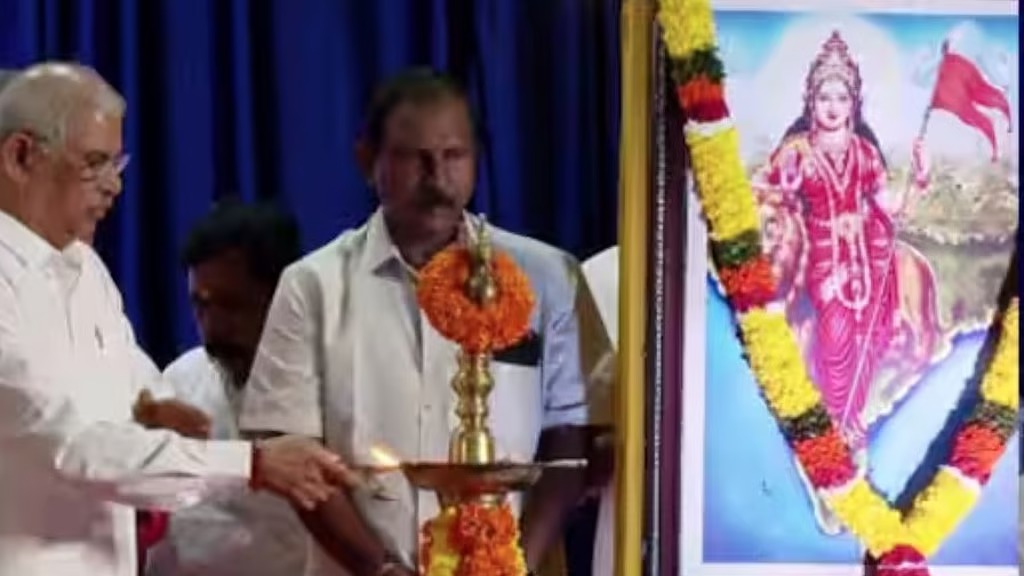 തിരുവനന്തപുരം: കേരള സര്വകലാശാലയില് സംഘടിപ്പിച്ച പരിപാടിയില് കാവിക്കൊടിയേന്തിയ ഭാരതാംബയുടെ ചിത്രം വച്ചതിനെതിരെ പ്രതിഷേധം സംഘര്ഷത്തില് കലാശിച്ചു. അടിയന്തരാവസ്ഥയുടെ അന്പതാം വാര്ഷികവുമായി ബന്ധപ്പെട്ട് ശ്രീ പത്മനാഭ സേവാസമിതി സംഘടിപ്പിച്ച പരിപാടിയില് ഗവര്ണര് രാജേന്ദ്ര ആര്ലേക്കറായിരുന്നു ഉദ്ഘാടകന്.പരിപാടിയില് കാവിക്കൊടിയേന്തിയ ഭാരതാംബയുടെ ചിത്രം നീക്കണമെന്നാവശ്യപ്പെട്ടാണ് എസ്എഫ്ഐയും കെഎസ്യുവും പ്രതിഷേധവുമായി രംഗത്തെത്തിയത്.